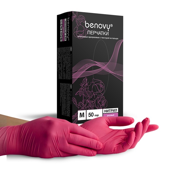 - Перчатки нитриловые Benovy Nitrile TrueColor разм. L 100 шт/упк (ярко-розовый)
