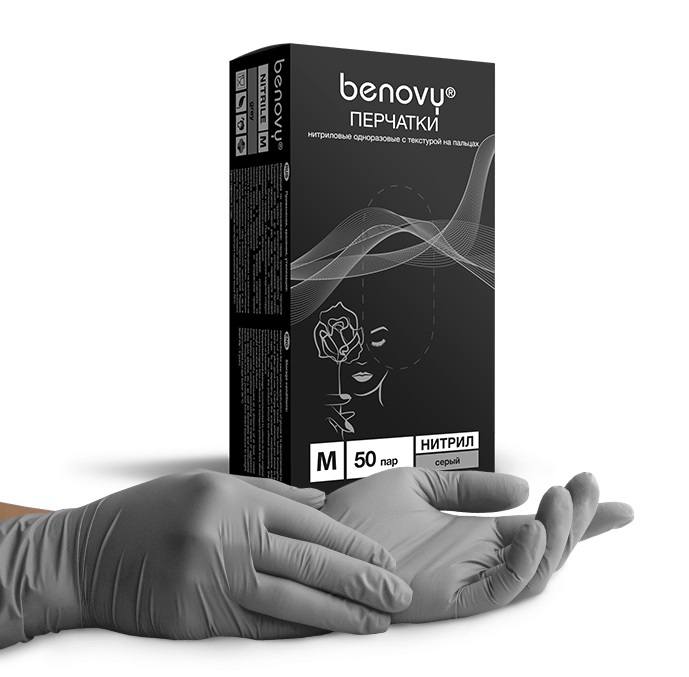 - Перчатки нитриловые Benovy Nitrile TrueColor разм. M 100 шт/упк (серые)