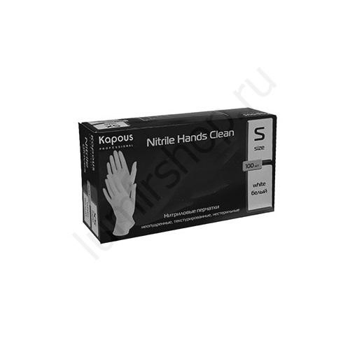 - Перчатки нитриловые Kapous Nitrile Hands Clean разм. S (белые) 50 пар/упк